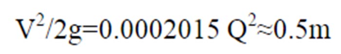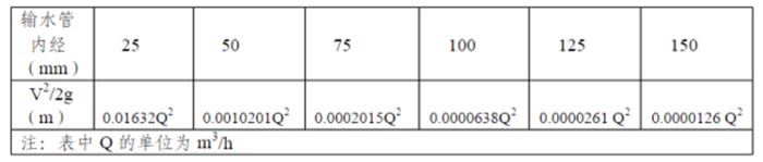 動能損失水頭V2/2g對于不同管徑為流量的函數(shù),不同管徑的數(shù)值見表2。