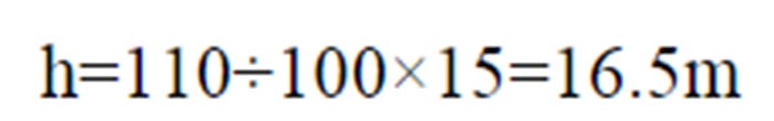 比如確定一眼深水井的動水位為85m,涌水量為50m3/h,輸水管路長度110m,公稱內(nèi)徑為75mm的鋼管,試計算水泵總揚程。從表中查出每100m管損為15m,那么管損
