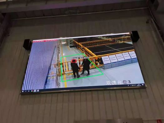 圖為實(shí)時(shí)新恩智能自創(chuàng)系統(tǒng)監(jiān)控客戶現(xiàn)場未戴安全帽并予以警示